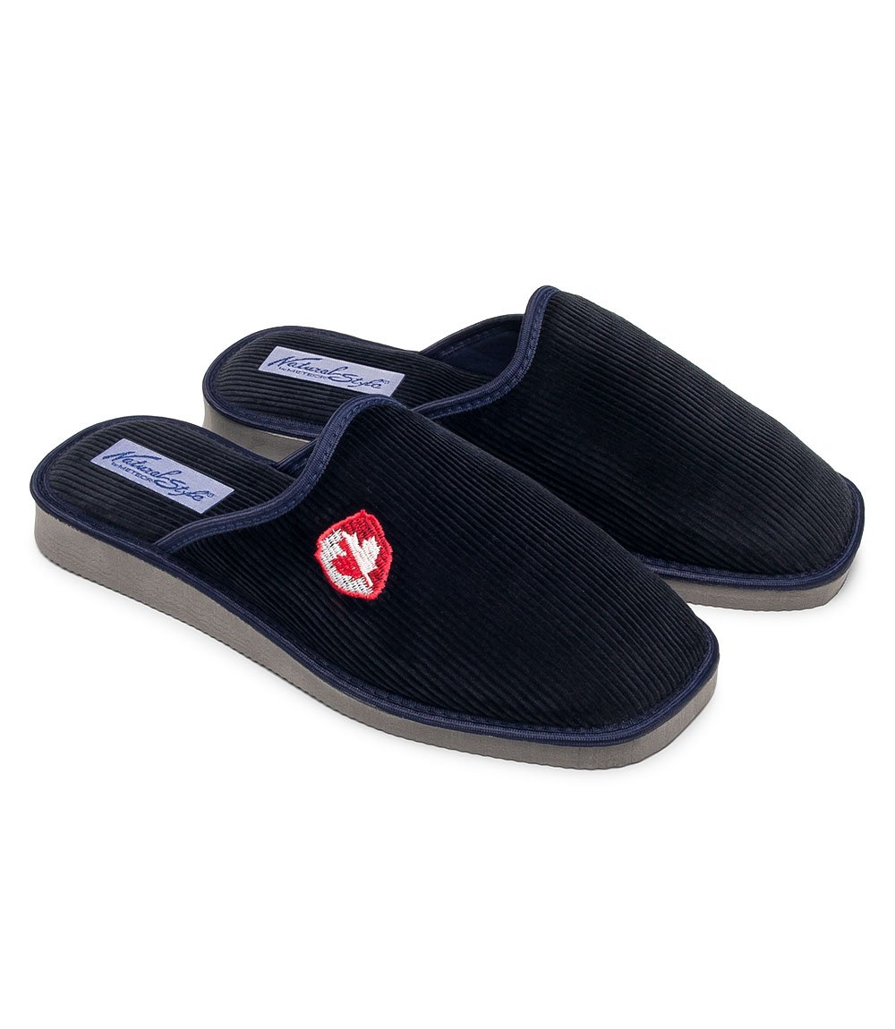Klasické pantofle z pevného přírodního manšestru s měkkou stélkou.
